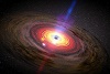 As the temprature and preasure rise at the center of the collapsing cloud, material near the center flattens into a disc and nuclear reaction begins.
